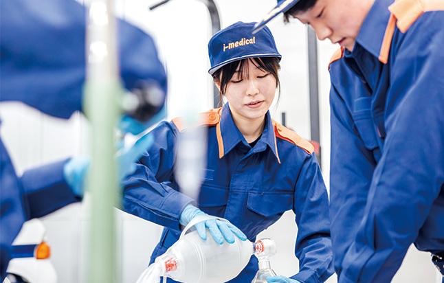 各学科で目指せる職業の方々が医療・福祉の現場で実際に行う仕事を体験!先輩方が学生スタッフとしてサポートします。