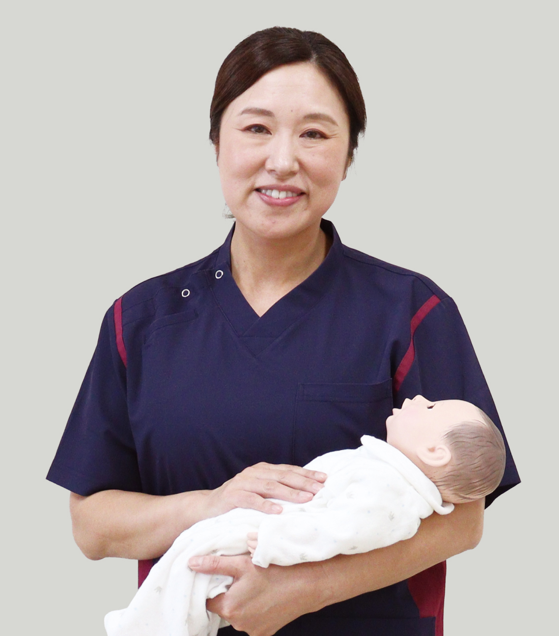 病院実習に向けて、新生児の的確な観察や抱き方、授乳の仕方等、安全で安心なお世話について、新生児人形を使用して演習をしています。