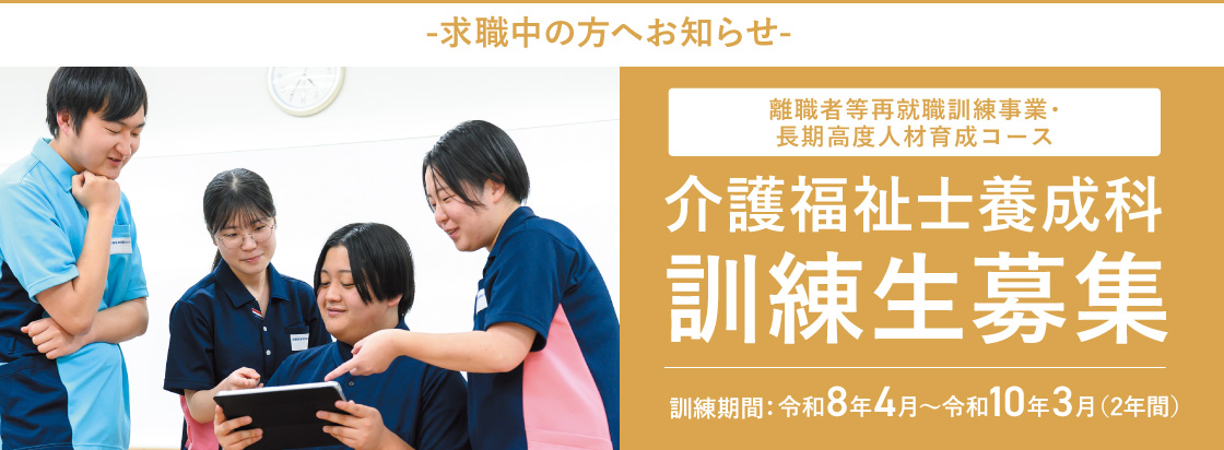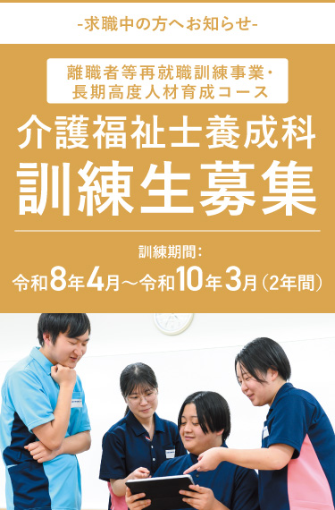介護福祉業界への正社員就職を目指す、2年間の教育訓練を委託により実施します。